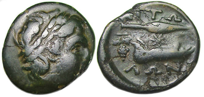 Aitolia, Aitolian League Ae : Apollo / Spear Head and Jawbone
