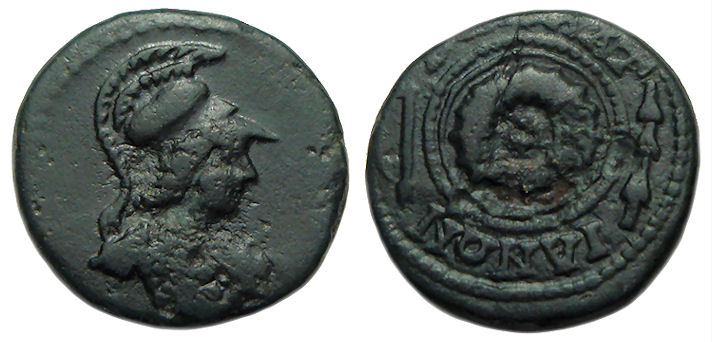 Rev: KALLAT- IANWN; Round shield, flanked by quiver and club